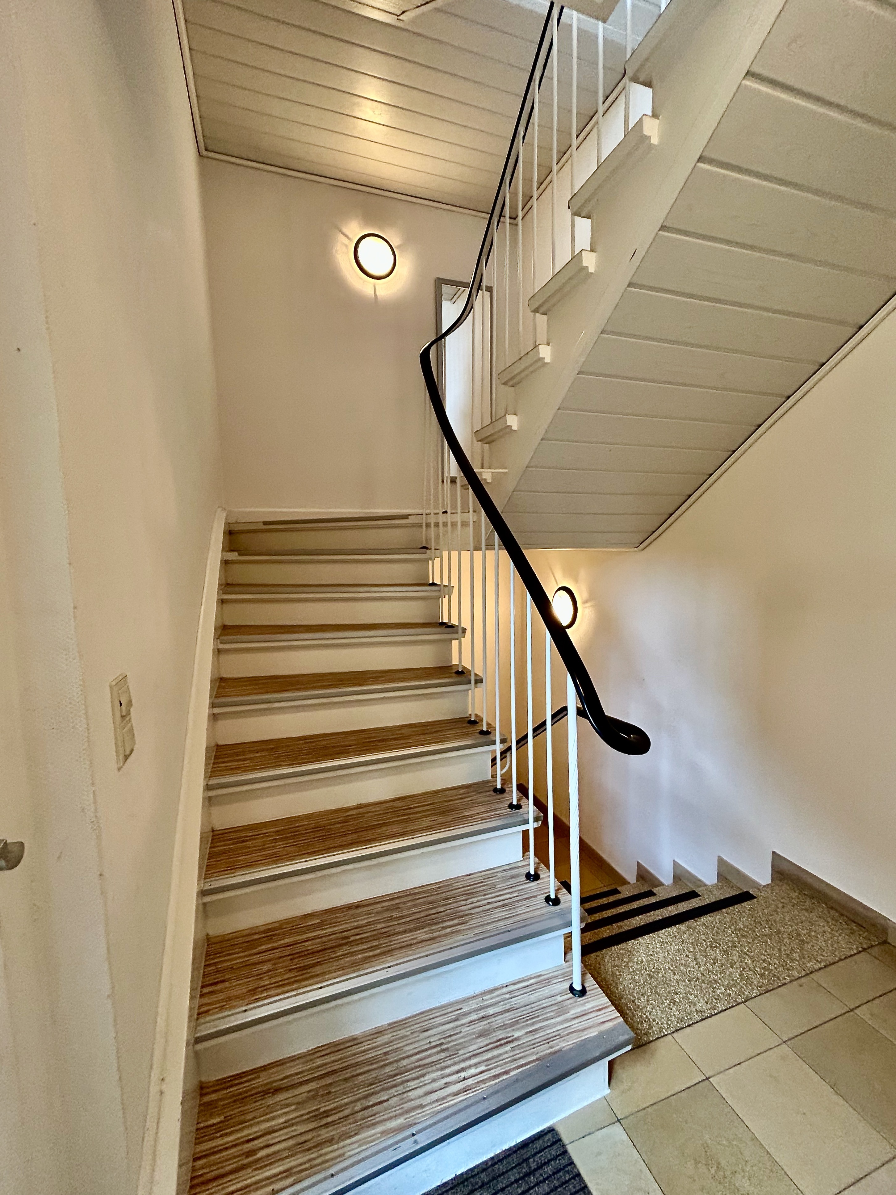 Über das hell modernisierte Treppenhaus gelangen Sie ins Obergeschoß, das aktuell vermietet ist.