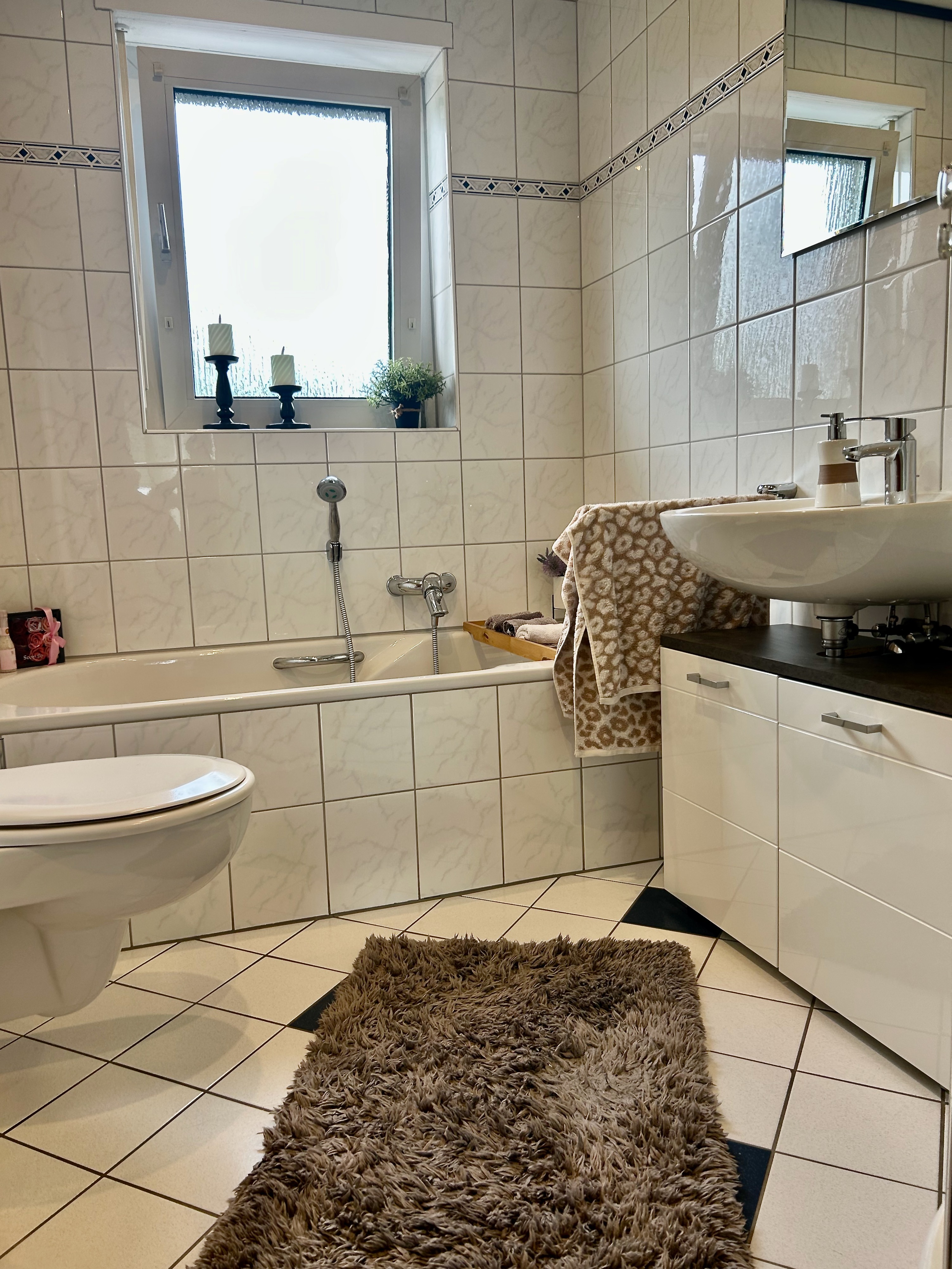 - Ausstattung des Bades Badewanne Dusche Fenster